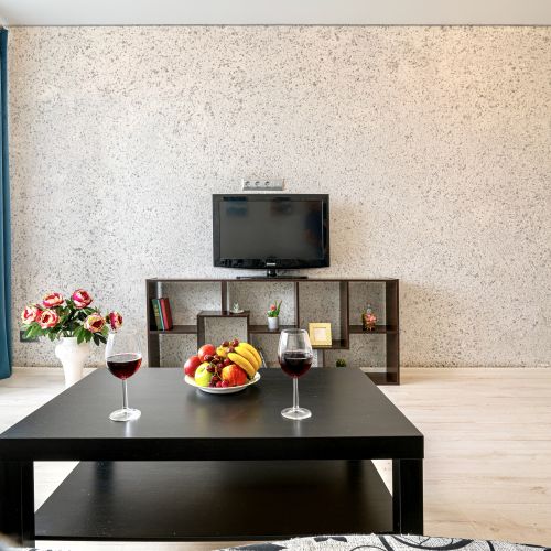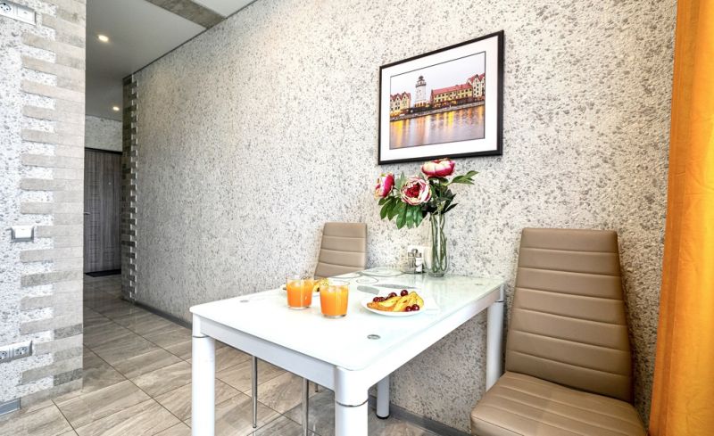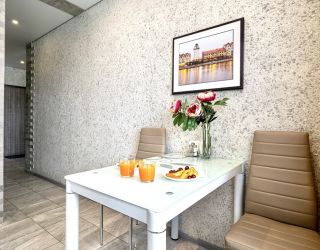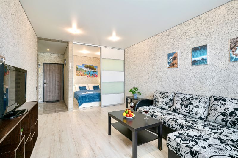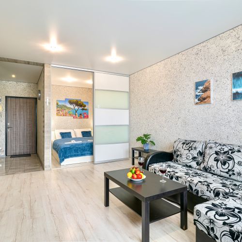 Данные апартаменты это просторная квартира с полноценной кухней, отдельной спальной зоной, гостиной и удобной ванной комнатой.